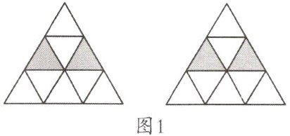 (1)将图1中其余小三角形涂黑一个,使整个被涂黑的图案构成一个轴对称图形(画出两种不同的);