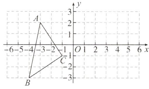 【例3】如图,$\triangle ABC$的三个顶点坐标分别为$A(-3,2)$,$B(-4,-3)$,$C(-1,-1)$.