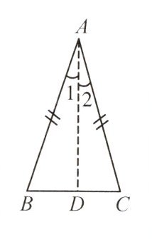 重合(简写成“三线合一”). || 几何语言 | | $\because AB = AC$,$\angle 1 = \angle 2$,$\therefore$
