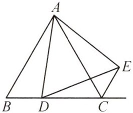 2. (中考新考法·探究与应用)如图,$\triangle ABC$是等边三角形,且$AB=2$,点$D$在线段$BC$上,以$AD$为一边在$AD$的右侧作$\triangle ADE$,使$AD=AE$,$\angle DAE=\angle BAC$,连接$CE$.