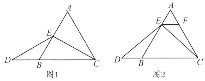 (2)当点E不是AB的中点时,如图2,过点E作$EF// BC$,求证:$△AEF$是等边三角形;