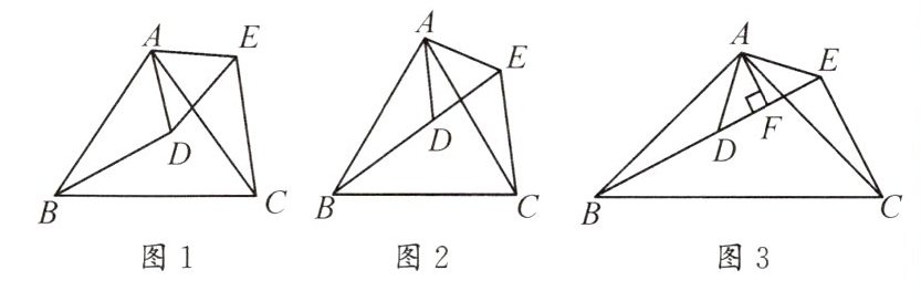 ②如图3,若$△ABC$与$△ADE$均为等腰直角三角形,$AD=AE,AF⊥BE$于点F,$AF=3,CE=8$,求BE的长.