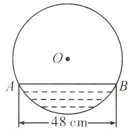 【例4】往直径为52cm的圆柱形容器内装入一些水以后,截面如图所示,若水面宽$ AB = 48 \text{cm} $,则水的最大深度为( )