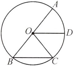 4. 如图,已知点$C,D$是以$AB$为直径的$\odot O$上的两点,连接$BC,OC,OD$,若$OD// BC$,求证:点$D$为$\overset{\frown }{AC}$的中点.