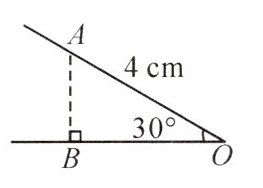 在$Rt\triangle ABO$中,$\angle BOA = 30^{\circ}$,$OA = 4\mathrm{cm}$。