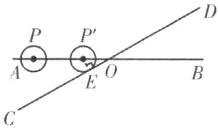 解:如图.当∠AOC=30°,半径为1 cm的⊙P'与直线CD相切时,P'E=1 cm,则OP'=2 cm,