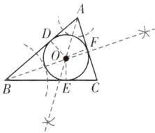 解:如图,分别作三角形任意两个内角的角平分线交于一点O,过点O作OD⊥AB于点D,以点O为圆心,OD长为半径作圆.