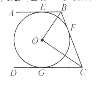 (人教教材母题改编)如图,AB,BC,CD分别与⊙O相切于E,F,G三点,且AB//CD,BO=6cm,OC=8cm.求:(1)BC的长;(2)⊙O的半径.
