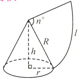 圆锥侧面展开图扇形弧长$l=\frac{n\pi R}{180}$(扇形弧长公式$l=\frac{n\pi R}{180}$,$n$是圆心角度数,$R$是扇形半径),底面圆周长$C = 2\pi r$。