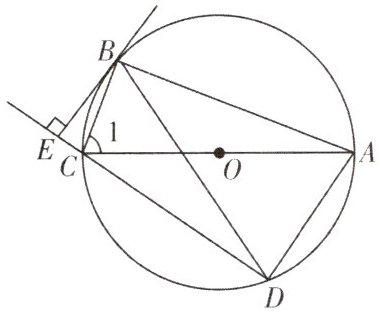 8.如图,$\odot O$是$\triangle ABC$的外接圆,AC为直径,弦$BD=BA$,$BE\perp DC$交DC的延长线于点E.