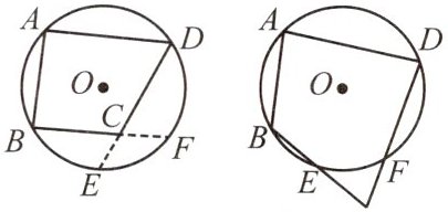 (4)证明:如图,作经过点$A$,$C$,$D$的$\odot O$,在劣弧$\overset{\frown}{AC}$上取一点$E$(不与点$A$,$C$重合),连接$AE$,$CE$,则$\angle AEC+\angle D=180^{\circ}$.