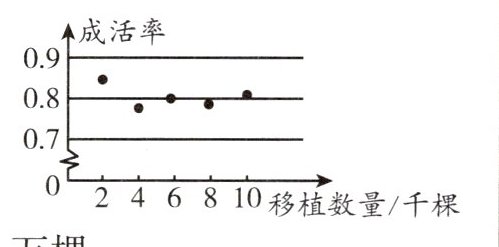 (2)由表格,可得随着树苗移植数量的增加,树苗移植成活率越来越稳定.