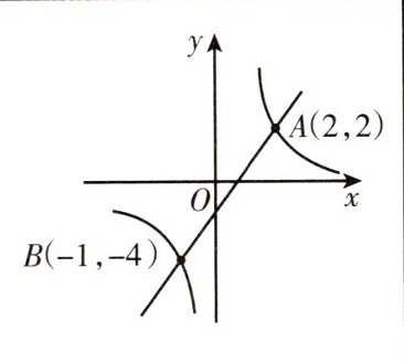 【变式4】如图,直线$y_{1}=ax+b$与双曲线$y_{2}=\frac {k}{x}$交于$A(2,2)$,$B(-1,-4)$两点.