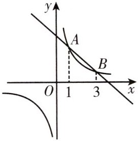 3. 如图,反比例函数$y_{1}=\frac {3}{x}$的图象与一次函数$y_{2}=kx+b$的图象相交于$A$,$B$两点,若$y_{1}<y_{2}$,则$x$的取值范围是 (