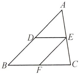 4. 如图,在$\triangle ABC$中,$DE// BC$,$EF// AB$,$AD = 3$,$AB = 7$,$BC = 6$,求$CF$的长。