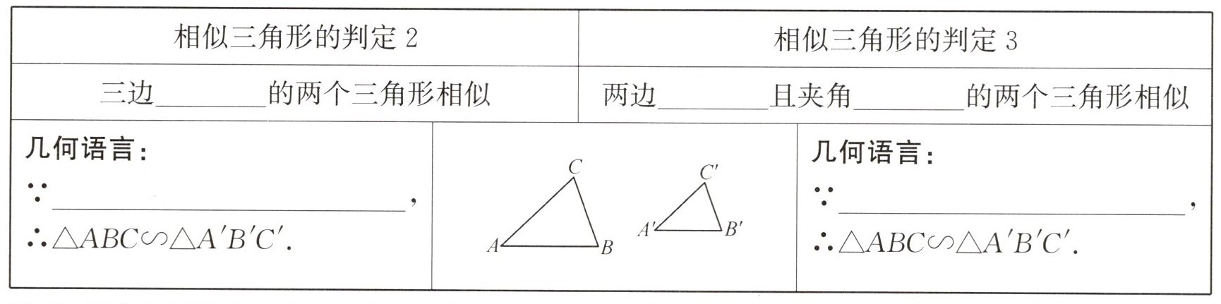 成比例 $\frac{AB}{A'B'}=\frac{AC}{A'C'}=\frac{BC}{B'C'}$ 成比例