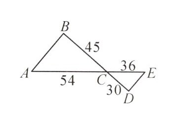 $\because \frac{AC}{EC}=\frac{54}{36}=\frac{3}{2},\frac{BC}{DC}=\frac{45}{30}=\frac{3}{2}$,