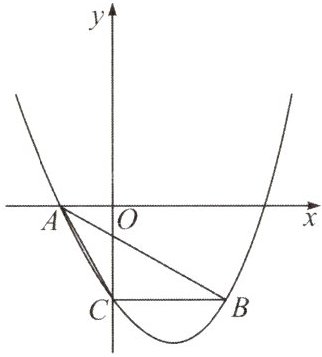4. 如图,抛物线$y = ax^{2}+bx - 4$经过$A(-3,0)$,$B(5,-4)$两点,与$y$轴交于点$C$,连接$AB$,$AC$,$BC$.