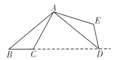 5. 如图,点D是等边三角形ABC内的一点,将线段AD绕点A顺时针旋转60°,得到线段AE,连接CD,BE。