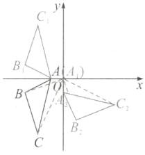 (2)画出将$\triangle ABC$绕原点O按逆时针方向旋转$90^{\circ }$所得的$\triangle A_{2}B_{2}C_{2}$;