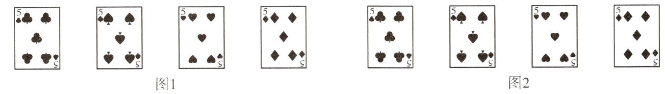 5. 如图1所示的四张牌,若只将其中一张牌旋转$180^{\circ }$后得到图2,则旋转的牌是 (