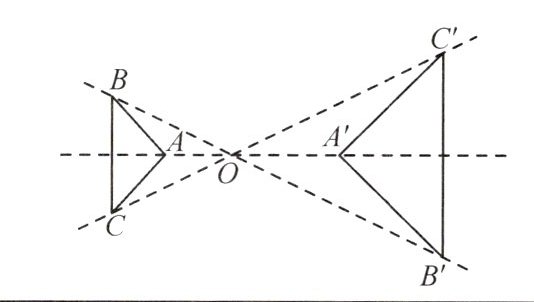 【例3】如图,$\triangle ABC$与$\triangle A'B'C'$是以点$O$为位似中心的位似图形,画出位似中心$O$。