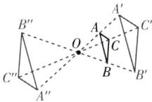 【例4】如图,以点$O$为位似中心,将$\triangle ABC$放大为原来的2倍。