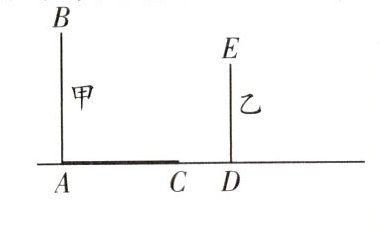 (1)某一时刻甲木杆在阳光下的影子如图所示,画出此时乙木杆的影子DF.