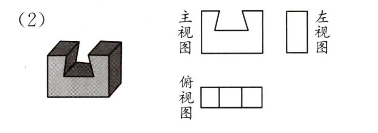 (2)中的主视图、俯视图均有错误,主视图中的“内圆”的轮廓线能看到,应用实线表示,俯视图中的“内圆”的轮廓线看不到,应用虚线表示;