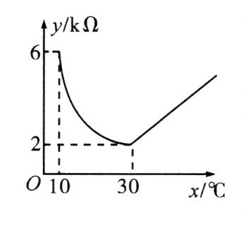 $\therefore$电阻$y$不超过$5k\Omega$时,温度$x$的取值范围是$12\leq x\leq41\frac{1}{4}$。