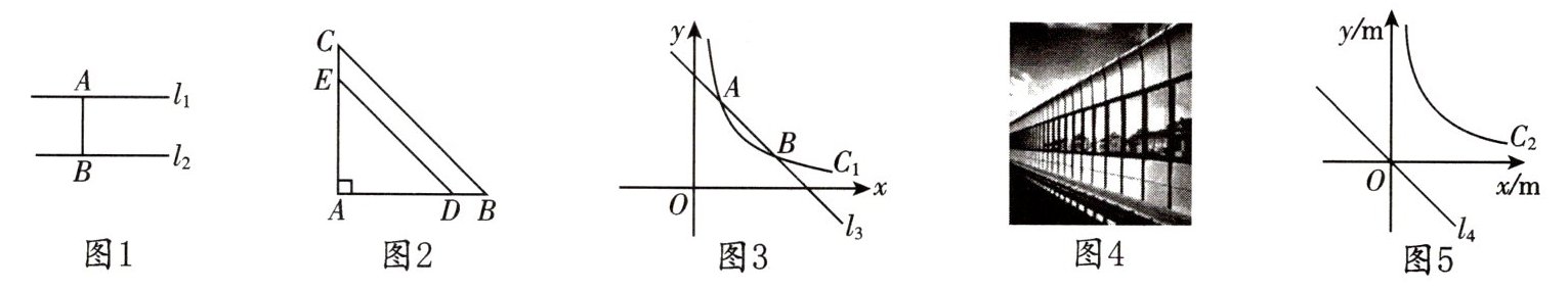 (3)按规定,住宅小区的外延到高速路的距离不超过80m时,需要在高速路旁修建与高速路相同走向的隔音屏障(如图4).有一条“东南-西北”走向的笔直高速路,路旁某住宅小区建筑外延呈双曲线的形状,它们之间的距离小于80m,现以高速路上某一合适位置为坐标原点,建立如图5所示的直角坐标系,此时高速路所在直线l₄的函数表达式为y=-x,小区外延所在双曲线C₂的函数表达式为y=$\frac{2400}{x}$(x>0),那么需要在高速路旁修建隔音屏障的长度是多少?