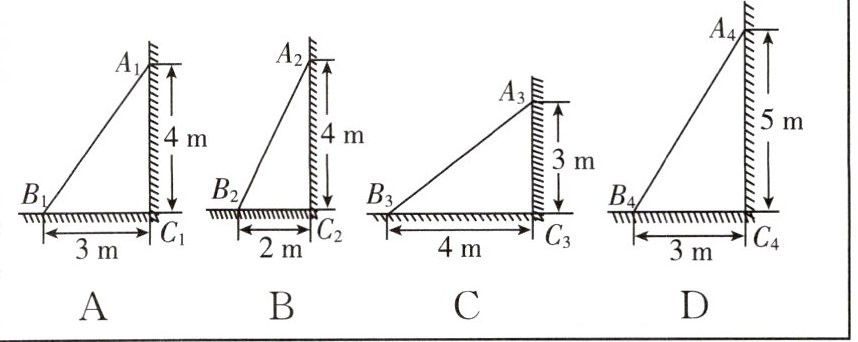 2. 如图,梯子斜靠在墙上,构成了$Rt\triangle AB_{1}C_{1}$和$Rt\triangle AB_{2}C_{2}$. 那么$\frac{B_{1}C_{1}}{AC_{1}}$和$\frac{B_{2}C_{2}}{AC_{2}}$有什么关系?请说明理由?