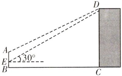 2.(北师教材九下P27T21)如图,某中学计划在主楼的顶部D和大门的上方A之间挂一些彩旗.经测量,得到大门AB的高度是5m,大门距主楼的距离是30m.在大门处测得主楼顶部的仰角是30°,而当时测倾器离地面1.4m.求: