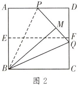 操作二:在AD上选一点P,沿BP折叠,使点A落在正方形内部点M处,把纸片展平,连接PM,BM,延长PM交CD于点Q,连接BQ.