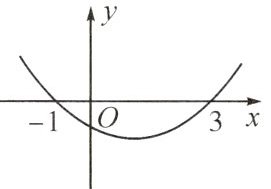 【例3】如图,抛物线$y = ax^{2}+bx + c$与$x$轴交于$(-1,0)$,$(3,0)$,确定下列各式的符号: