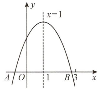 【例4】二次函数$y = ax^{2}+bx + c(a \neq 0)$的图象如图所示,下列结论:①$2a + b = 0$;②$3a + c > 0$;③$m$为任意实数,则$a + b > am^{2}+bm$;④若$A(x_{1},0)$,$B(x_{2},0)$,则$x_{1}+x_{2}=2$.其中正确的有(