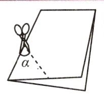 【例2】(1)如图,把一个长方形的纸片对折两次,然后剪下一个角.要得到一个正方形,剪口与折痕所成的角度$\alpha =$