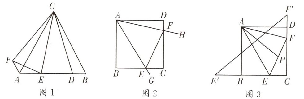 【类比探究】(2)如图2,在正方形ABCD中,∠EAF的两边分别与线段BC,CD相交于E,F(点E不与B,C重合,点F不与C,D重合),且∠EAF=45°.