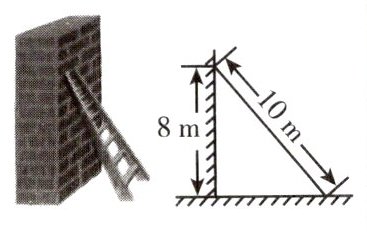 在Rt△ABC中,由勾股定理,得BC = $\sqrt{AB^{2} - AC^{2}} = \sqrt{10^{2} - 8^{2}} = 6(m)$。