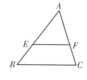 【例2】(北师教材九上P83例题改编)如图,在$ \triangle A B C $中,点$ E $,$ F $分别是$ A B $和$ A C $上的点,且$ E F // B C $。