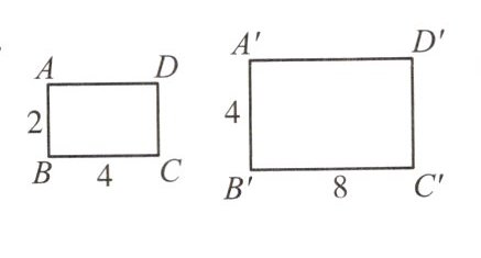 $ \because A B = 2 , B C = 4 , A ^ { \prime } B ^ { \prime } = 4 , B ^ { \prime } C ^ { \prime } = 8 $.