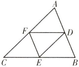 $\therefore \frac {DF}{BC}=\frac {EF}{AB}=\frac {DE}{AC}=\frac {1}{2}.$