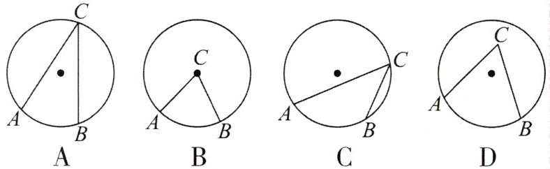 9. (1)下列图中,$\angle ACB$是圆心角的是(