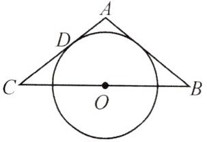 6.(RJ九上P98改编)如图,等腰$△ABC$的腰AC与$\odot O$相切于点D,$AB= AC$,圆心O是BC的中点.求证:AB是$\odot O$的切线.