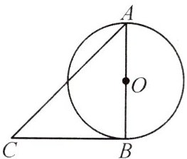 根据“经过半径的外端并且垂直于这条半径的直线是圆的切线”,因为$OA$是$\odot O$的半径,$OA\perp AB$,$A$在$AB$上,所以$AB$是$\odot O$的切线。