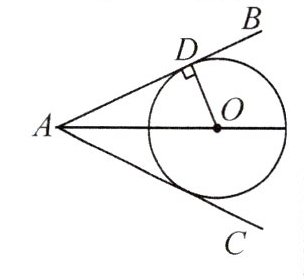 5.(2024·天河区期中)如图,O为$∠BAC$的平分线上一点,$OD⊥AB$于点D,以点O为圆心,OD为半径作$\odot O$.求证:$\odot O$与AC相切.