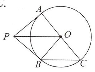 3. 例(RJ九上P101改编)如图,$ PA $,$ PB 是\odot O$的切线,$ A $,$ B $为切点,$ AC 是\odot O$的直径,$\angle P = 60^{\circ}$。