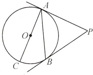 4. 如图,$ PA $,$ PB $是$\odot O$的切线,$ A $,$ B $为切点,$ AC $是$\odot O$的直径,$\angle C = 50^{\circ}$。