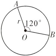 5. 如图,$ \overset{\frown}{AB} $ 的长为 $ 12\pi $ cm,圆心角 $ \angle AOB = 120^{\circ} $。求此弧所在圆的半径为