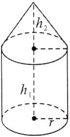 7. 例 (RJ九上P114改编)如图,一个蒙古包可以近似地看作一个圆锥和一个圆柱的组合体,已知圆柱的高$h_{1}= 6m$,圆锥的高$h_{2}= 4m$,$r= 3m$,求此蒙古包(含底圆)的表面积.
